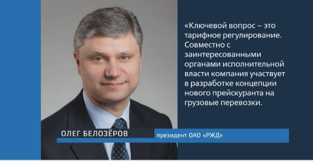 Ключевой вопрос – это тарифное регулирование. Совместно с заинтересованными органами исполнительной власти компания участвует в разработке концепции нового прейскуранта на грузовые перевозки. Сейчас мы руководствуемся документом, которому 13 лет, и пришли к выводу, что надо его усовершенствовать. Главные задачи, которые должен будет решить новый прейскурант – это исключение перекрёстного субсидирования перевозок одних видов грузов другими, а также гарантированное возмещение затрат перевозчика и владельца инфраструктуры как минимум на уровне себестоимости.