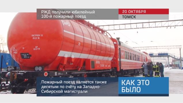 На станции Томск-2 прошла торжественная церемония передачи РЖД юбилейного 100-го пожарного поезда. Поезд приобретён холдингом в рамках инвестиционной программы «Пожарная безопасность – 2016».