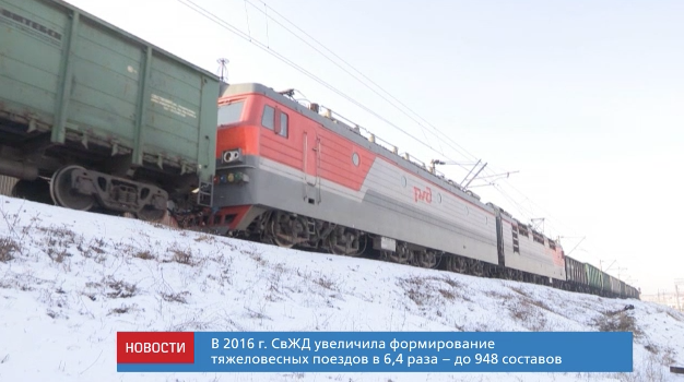 Свердловская магистраль за 2016 г. в 6,4 раза увеличила формирование тяжеловесных поездов – до 948 составов