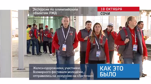Как это было Экскурсия по олимпийским объектам РЖД в Сочи editor19 октября 201720 октября 20170 участники Всемирного фестиваля молодёжи отправились на экскурсию на «Ласточке»