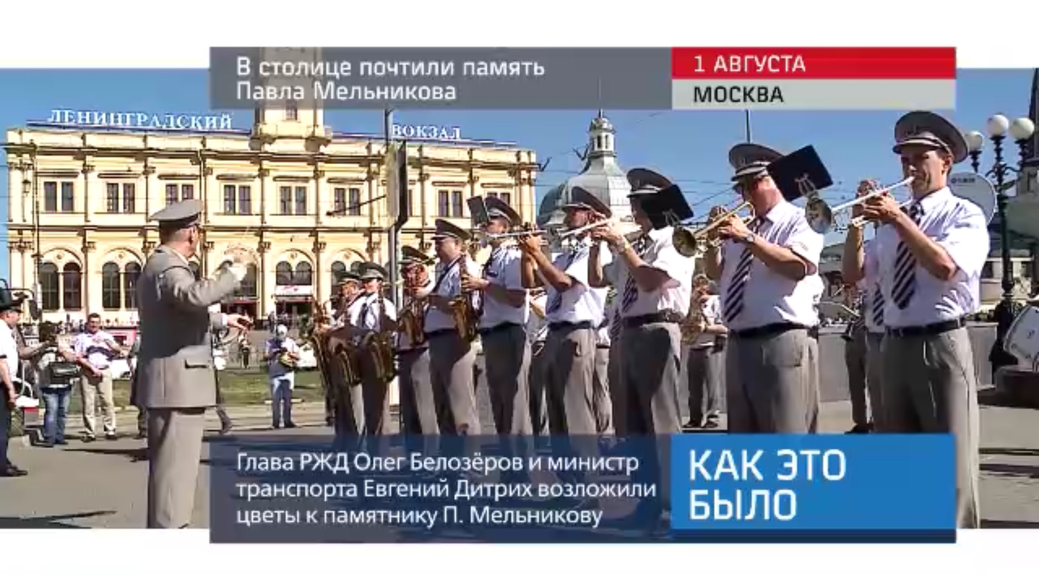 Генеральный директор ОАО «РЖД» Олег Белозёров и глава Минтранса Евгений Дитрих возложили цветы к памятнику Павлу Мельникову, первому министру путей сообщения Российской империи.