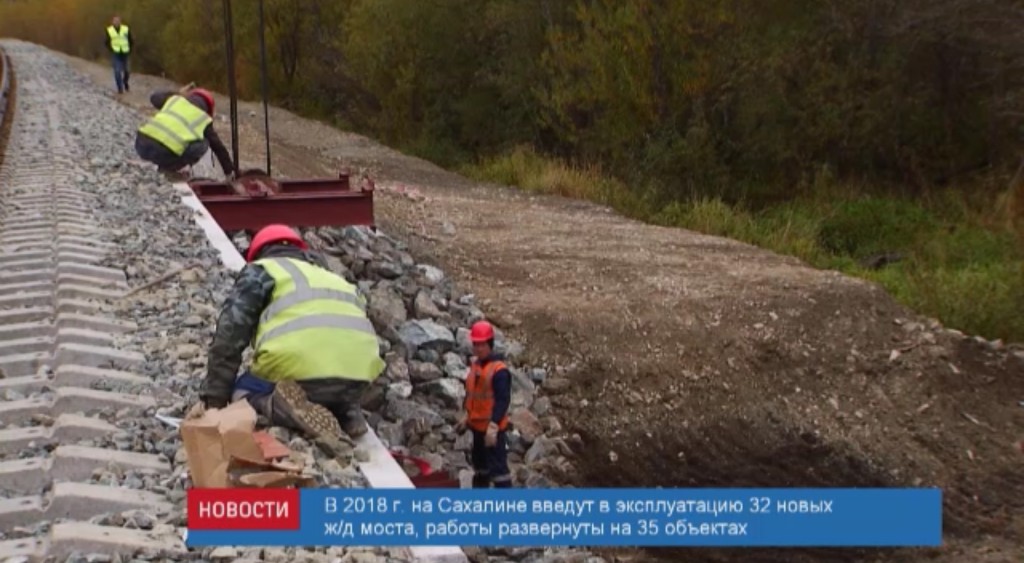 32 новых ж/д моста введут в эксплуатацию на Сахалине в этом году. В данный момент строительные работы развернулись на 35 таких сооружениях. Речь идёт об объектах на линиях от станции Корсаков до станции Буюклы. Почти везде завершено обустройство строительных и рабочих площадок, вынесены кабельные и оптико-волоконные линии связи. Также в 2018 г. на Сахалине на 62,4 км завершат работы по переустройству островной колеи на общесетевой формат.