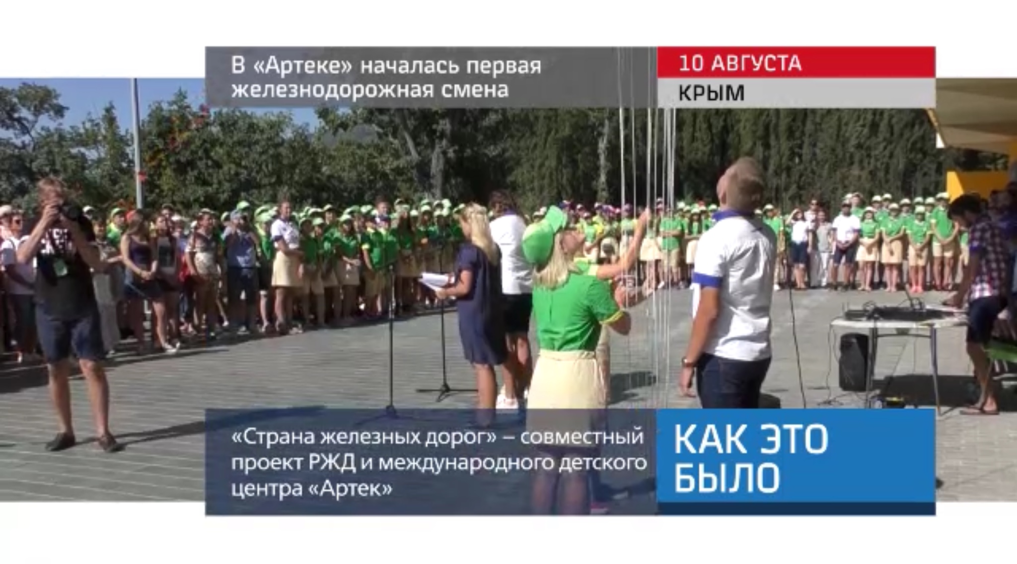 В международном детском центре «Артек» началась первая железнодорожная смена. Это совместный проект «РЖД» и «Артека». Отбор участников проходил на конкурсной основе. Всего железнодорожных смен в этом году будет две: 100 ребят поедут в августе и ещё 500 – в октябре.