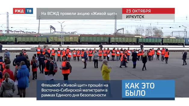 Единый день безопасности прошёл на 14 железнодорожных станциях Восточно-Сибирской железной дороги. В его рамках провели флешмоб «Живой щит».