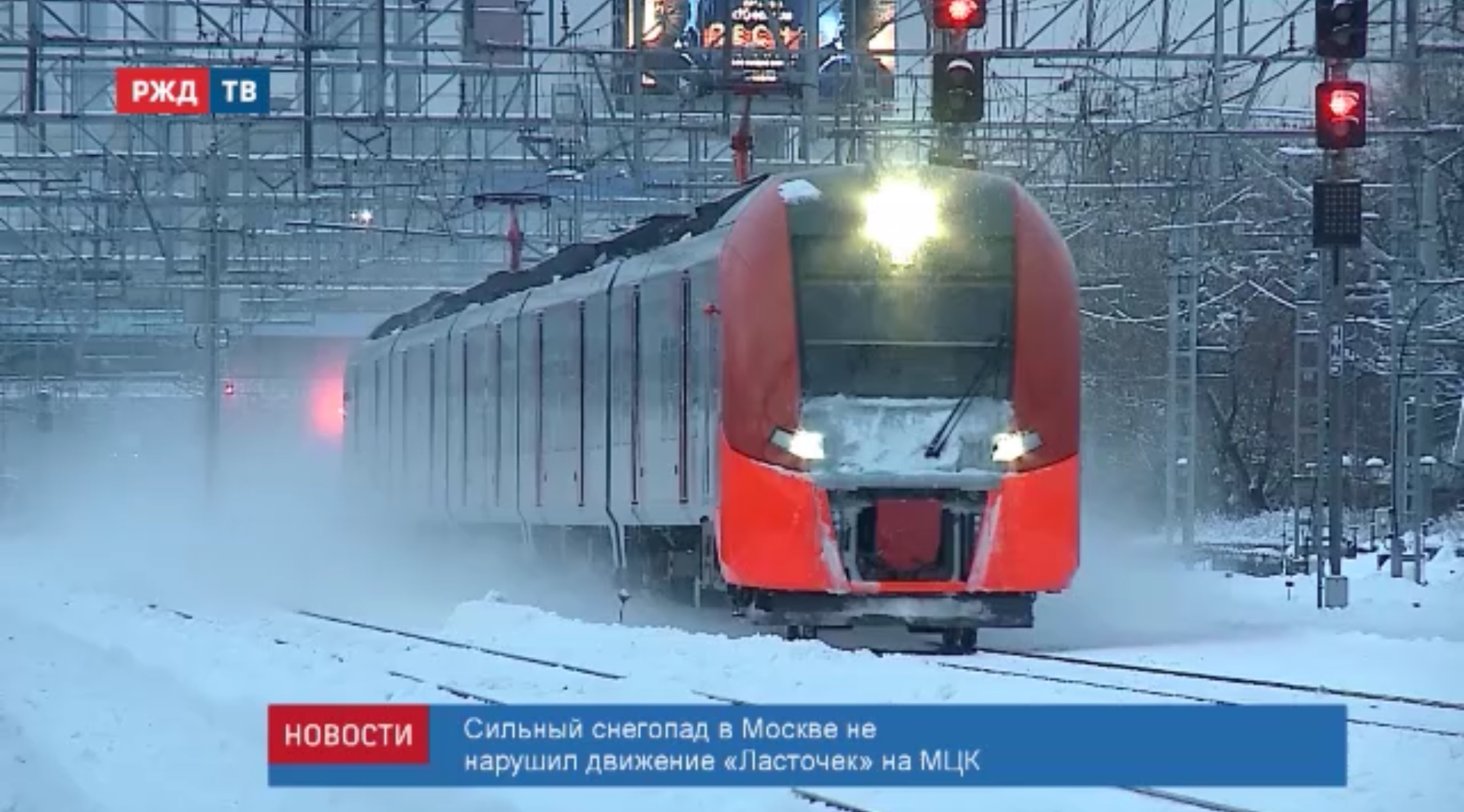 Сильный снегопад, который прошёл в столице накануне, не повлиял на движение «Ласточек» по Московскому центральному кольцу.