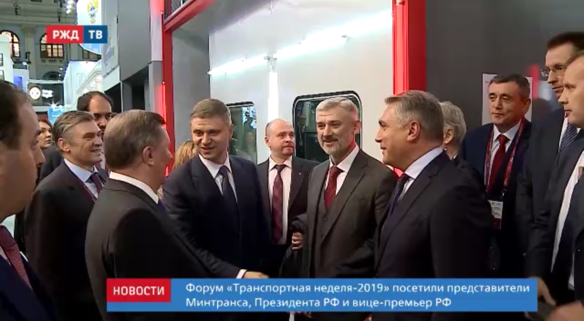 Форум «Транспортная неделя-2019» посетили представители Минтранса, Президента РФ и вице-премьер РФ. Экскурсию для гостей выставки провёл глава РЖД Олег Белозёров. Он продемонстрировал чиновникам концепцию нового плацкартного вагона с модульным пространством.