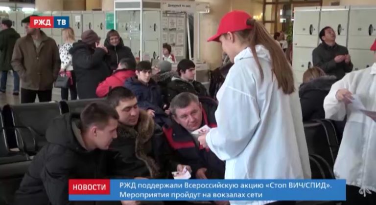 В рамках акции «Стоп ВИЧ/СПИД» медики РЖД распространяют информационные листовки.