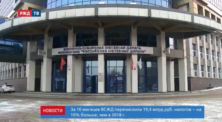 За 10 месяцев этого года Восточно-Сибирская железная дорога перечислила 19,4 млрд руб. налогов. Это на 10% больше, чем в 2018…