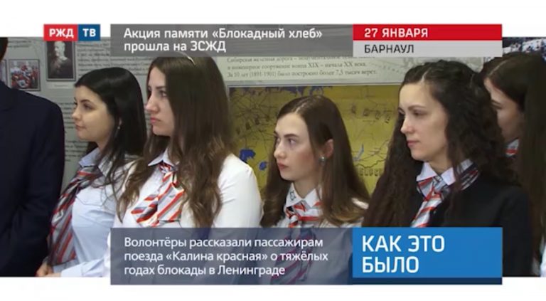 Алтайские железнодорожники присоединились к акции памяти «Блокадный хлеб». В день снятия блокады Ленинграда, в скором поезде «Калина красная» волонтёры Всероссийской…