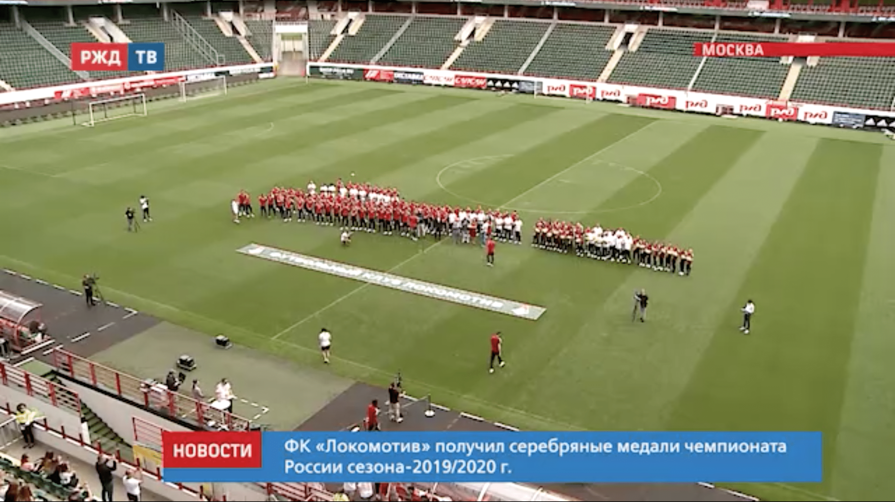 ФК «Локомотив» получил серебряные медали чемпионата России сезона-2019/20 г. Церемония награждения прошла на стадионе «РЖД Арена». Медали спортсменам вручал первый вице-президент РФС Никита Симонян.