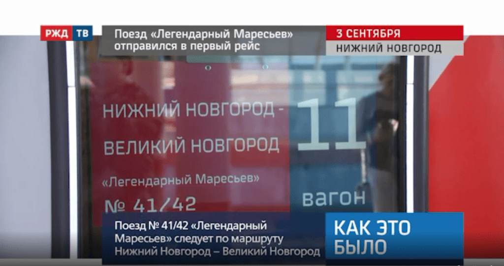 В Год памяти и славы РЖД продолжают реализацию проекта, направленного на увековечивание памяти героев Великой Отечественной войны. Поезду № 41/42 сообщением Нижний Новгород – Великий Новгород присвоено имя Героя Советского Союза Алексея Петровича Маресьева. В свой первый рейс состав отправился 3 сентября.