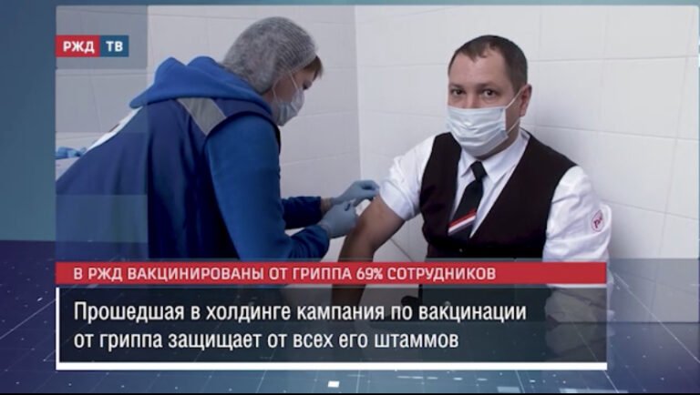 В холдинге РЖД вакцинированы от гриппа 466,1 тыс. железнодорожников. Прививка защищает от всех штаммов.