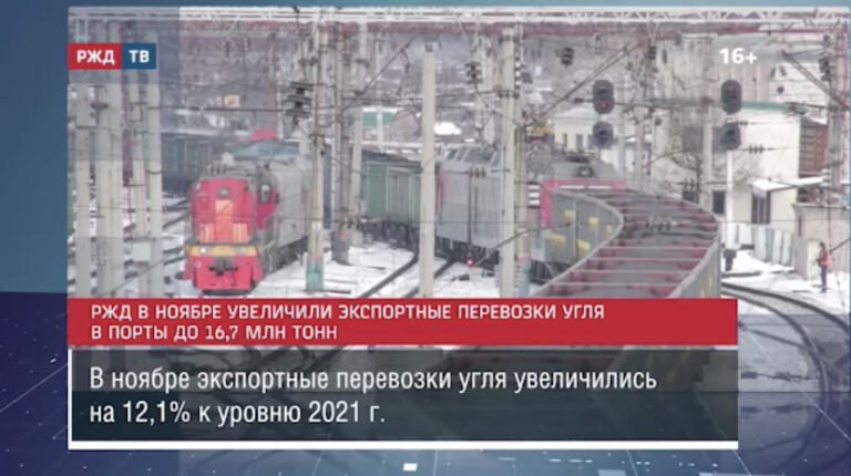 В ноябре экспортные перевозки угля увеличились на 16,7 млн тонн. Это на 12,1% больше, чем за тот же период 2021…