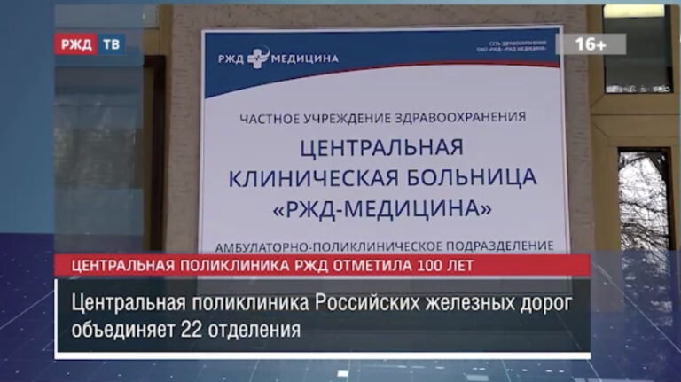 Центральной поликлинике РЖД в Москве исполнилось 100 лет. Она объединяет 22 отделения, в которых работают более 160 врачей, 390 сотрудников…