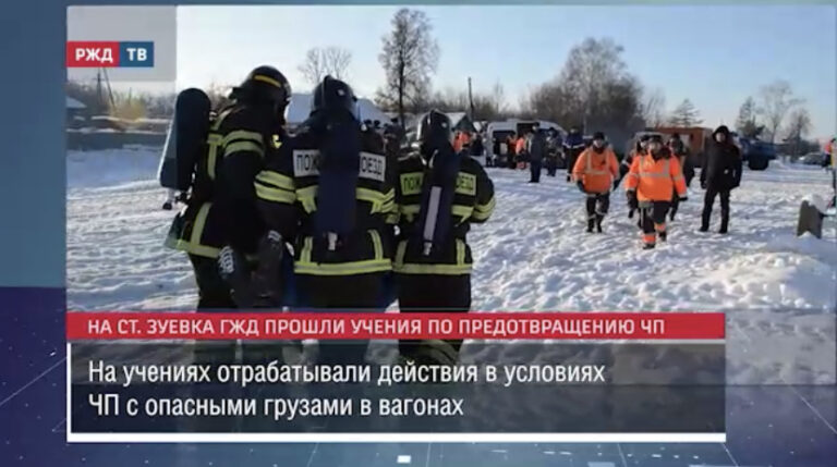 На станции Зуевка бригады пожарного поезда, сотрудники МЧС и скорой помощи отрабатывали действия в условиях ЧП с опасными грузами в…