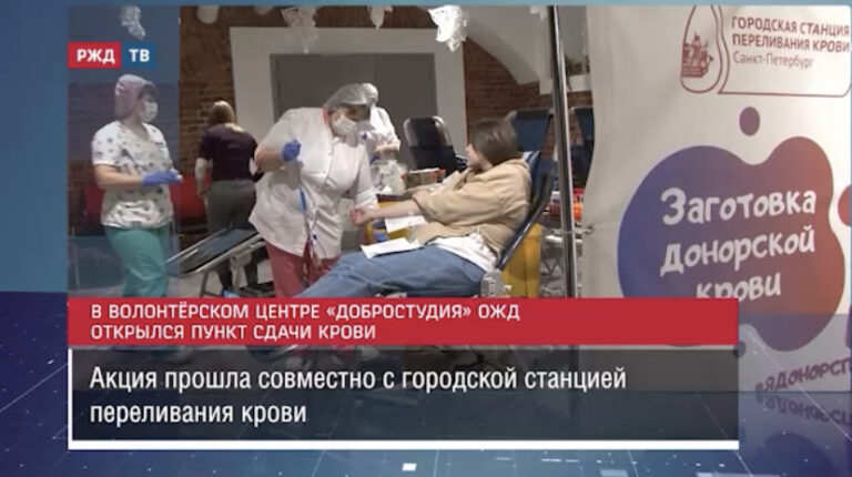 В волонтёрском центре «Добростудия» в Санкт-Петербурге открылся пункт сдачи крови. Донорами стали около 100 сотрудников ОЖД.