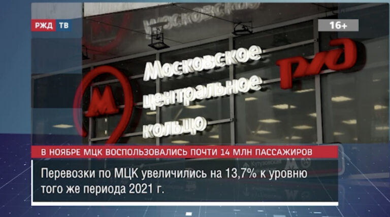 В ноябре по МЦК проехали почти 14 млн пассажиров. Это на 13,7% больше, чем в том же периоде 2021 г.