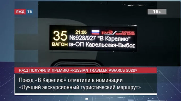 РЖД стали победителем премии «Russian Traveler Awards 2022». Проект поезда «В Карелию» выиграл в номинации «Лучший экскурсионный туристический маршрут»