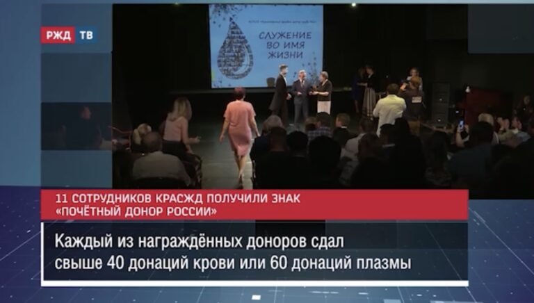 В малом зале Красноярского театра музыкальной комедии прошло торжественное вручение знаков «Почётный донор России». Обладателями награды стали 11 работников КрасЖД.