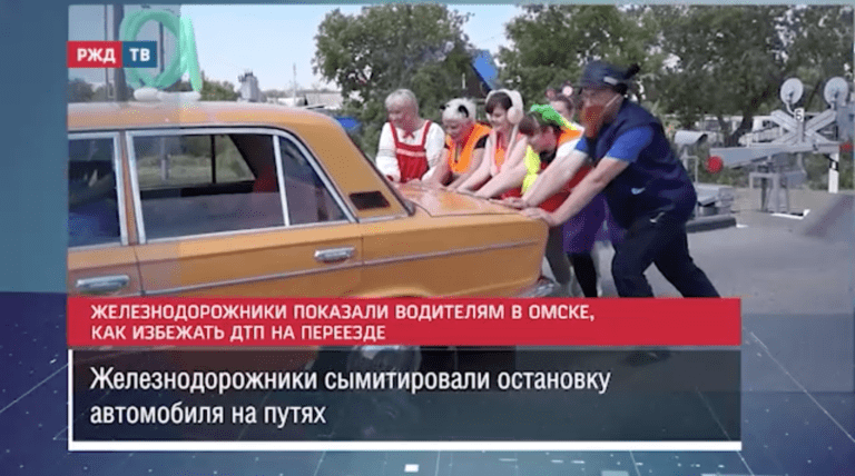 Сотрудники Западно-Сибирской железной дороги совместно с волонтёрами в Омске провели показательную эвакуацию транспортного средства на переезде.