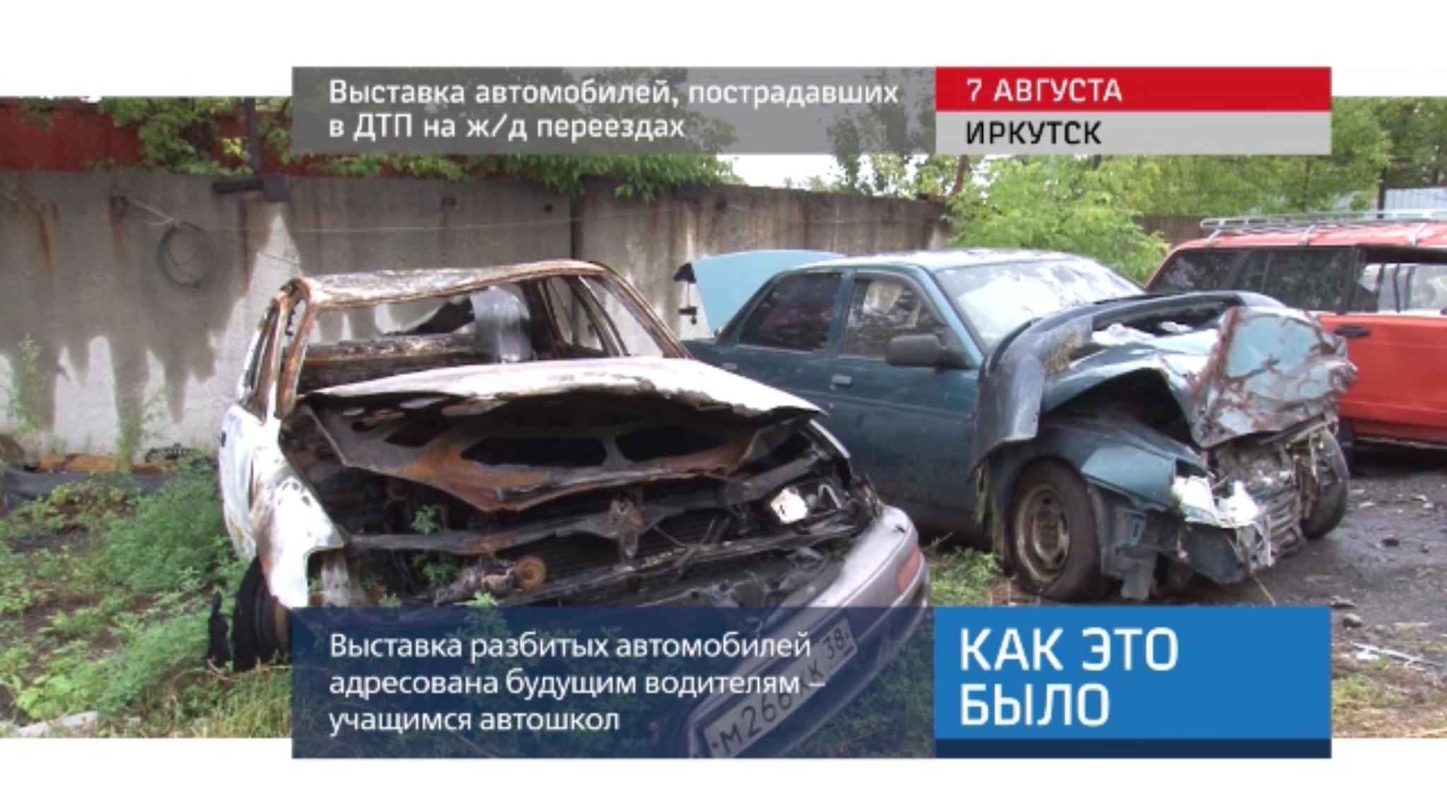 Посмотреть на выставку разбитых автомобилей предложили в Иркутске учащимся автошкол. Акцию организовали Восточно-Сибирская магистраль и областное управление МВД. Машины, представленные на импровизированной выставке, пострадали в ДТП из-за того, что выехали на переезд под запрещающий сигнал.
