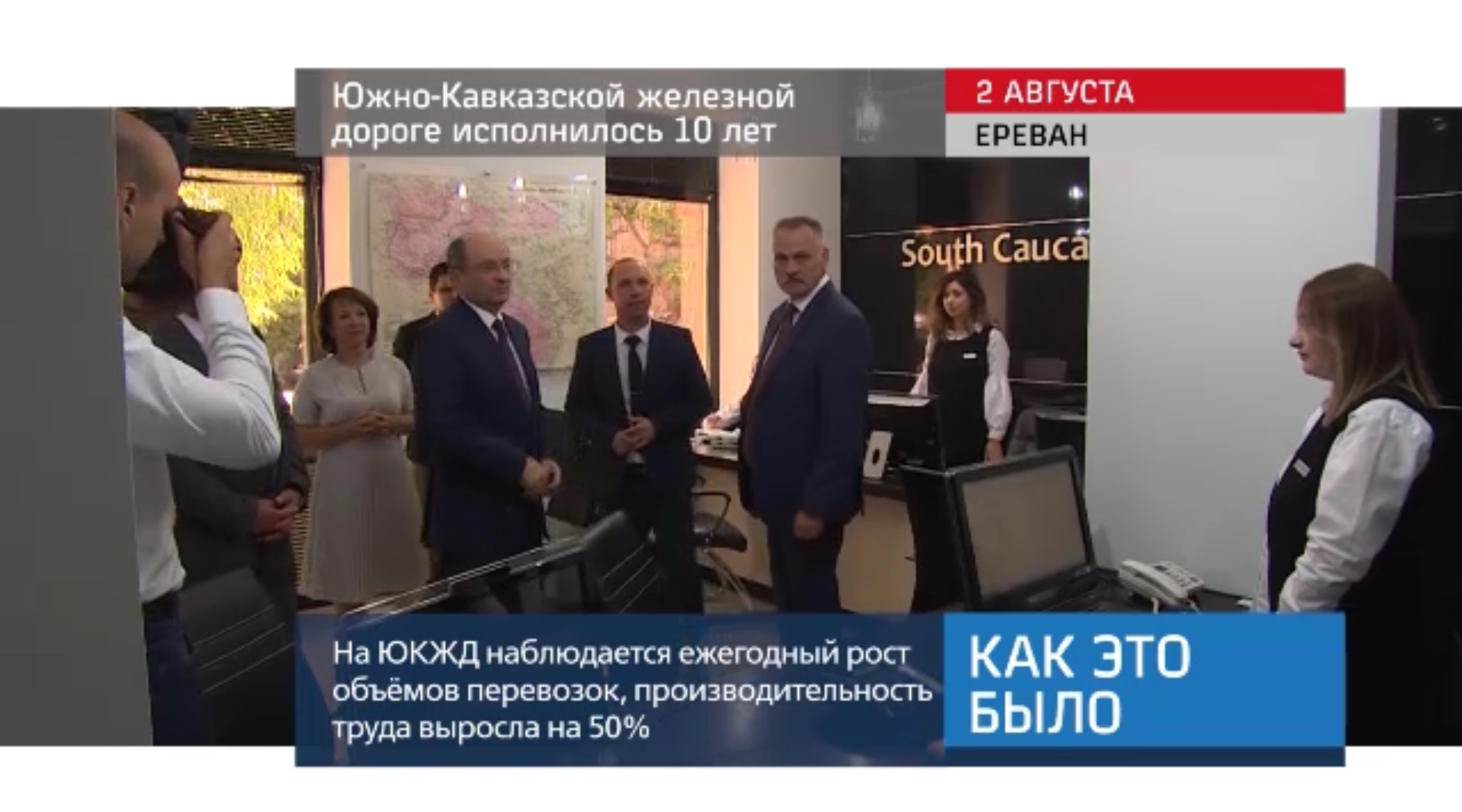 В Армении отмечают 10-летие Южно-Кавказской железной дороги. Топ-менеджер РЖД Александр Мишарин встретился с вице-премьером Армении Тиграном Авиняном, с которым обсудил вопросы развития пассажирских и грузоперевозок по стране, а также перспективы развития международных перевозок. В главном управлении ЮКЖД руководство компании ознакомило А. Мишарина с процессом дорожного управления, внедрением электронного управления грузоперевозками.