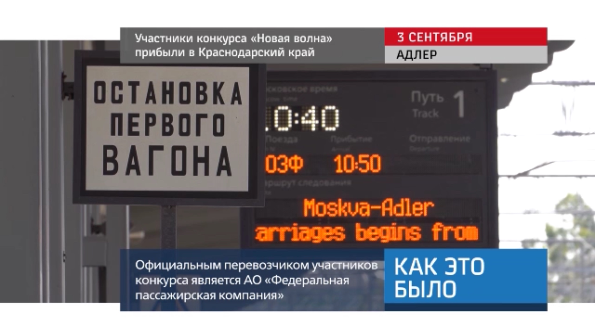 Участники конкурса «Новая волна», официальным перевозчиком которого является АО «Федеральная пассажирская компания», встречали угощениями прибывающих пассажиров поезда Москва – Адлер.