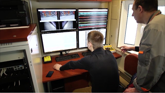 Вся «начинка» в этом вагоне электронная, малейшие дефекты рельсов выявляют с помощью ультразвука. Впервые вагон оборудовали